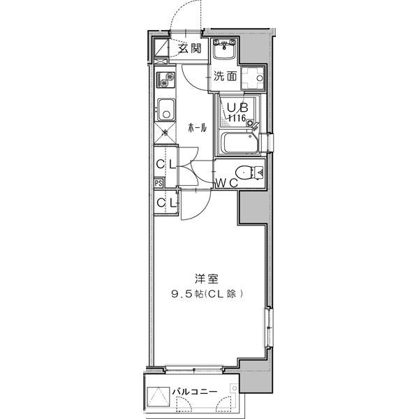 部屋は9.5帖の洋室で、インターネット完備、メインの照明はLEDライトで電気代も抑えられます。